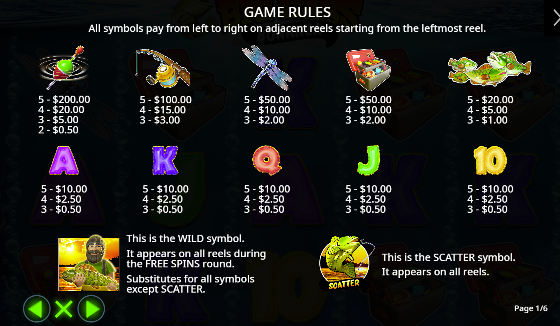 - Currency Symbol Accumulation: Golden fish bearing cash valuations accumulated when Angler Wild materializes on cylinder 5.